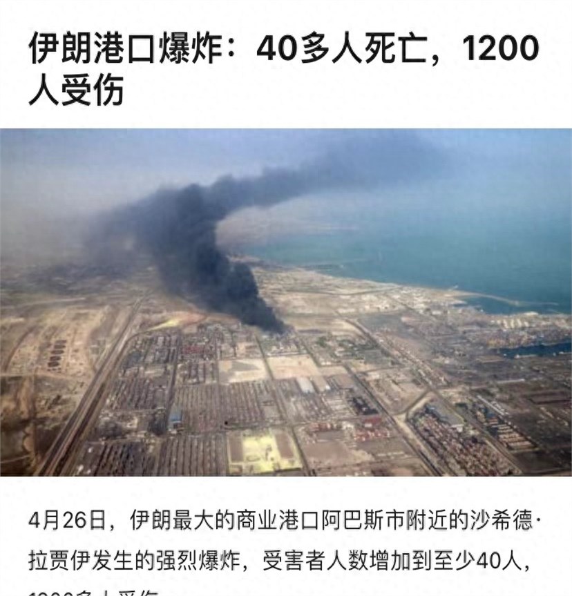 截至4月28日,伊朗最大港口阿巴斯港区发生的巨大爆炸已经造成40人遇难,1200人受伤。目前爆炸已经结束,但火灾还没完全控制,普京派出了灭火飞机帮助救灾。各国都对伊朗表示慰问。