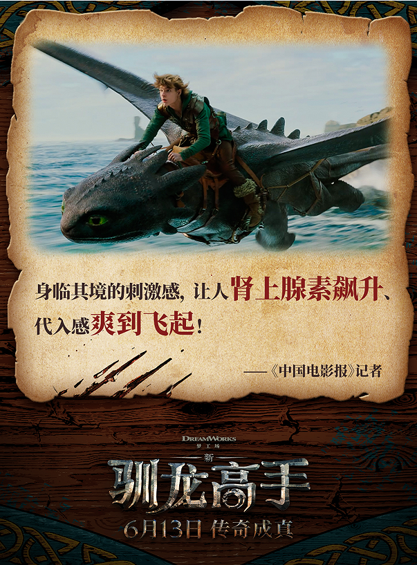 环球影业真人巨制《新·驯龙高手》6月13日正式登陆全国影院。沉浸视听重塑冒险传奇邀你大银幕乘龙高飞!每片龙鳞触手可及,每次振翅有力可感,原班人马集结助经典动画跃然成真。本片改编自梦工厂经典动画,由原动画导演迪恩·德布洛斯执导,讲述瘦弱少年小嗝嗝与传说飞龙“没牙仔”从相遇、相知到联手改变维京部落与龙族世代仇怨的热血传奇。