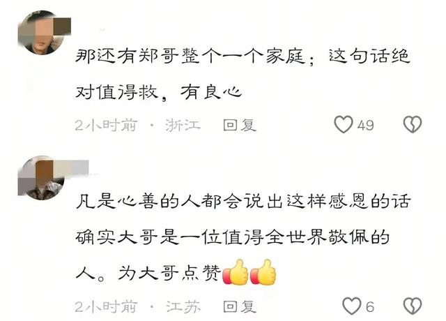 英雄接力:中国人骨子里的温暖网友们被这份跨越生死的感恩打动:"阿姨哭得让人心疼,幸好遇到了好心人","郑大哥那句 ' 跳下去,救上来 ',比任何豪言壮语都有力量"。更有人发现,就在一天前,广东韶关的 90 后党员钟威刚因火海中徒手掰车门救人登上热搜。"原来英雄真的会 ' 接力 ',这就是中国人的善良吧!"