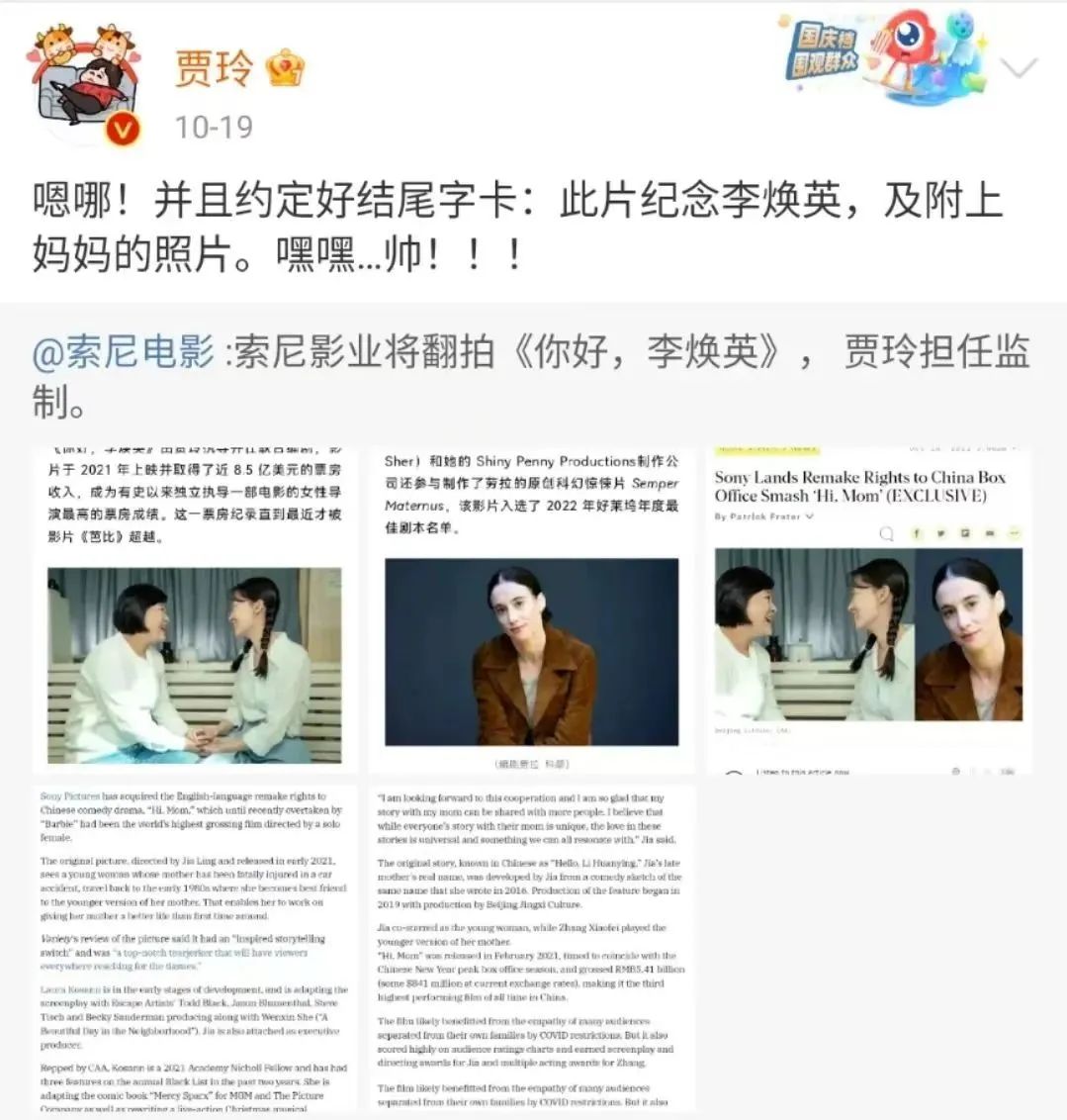 一路走来,她的努力和真诚不仅让她收获了圈子里的好人缘,也让她收获了炙手可热的成功。《你好,李焕英》最终票房突破54亿,让贾玲成为了中国票房最高的女导演,同时这部电影也要在好莱坞进行翻拍。