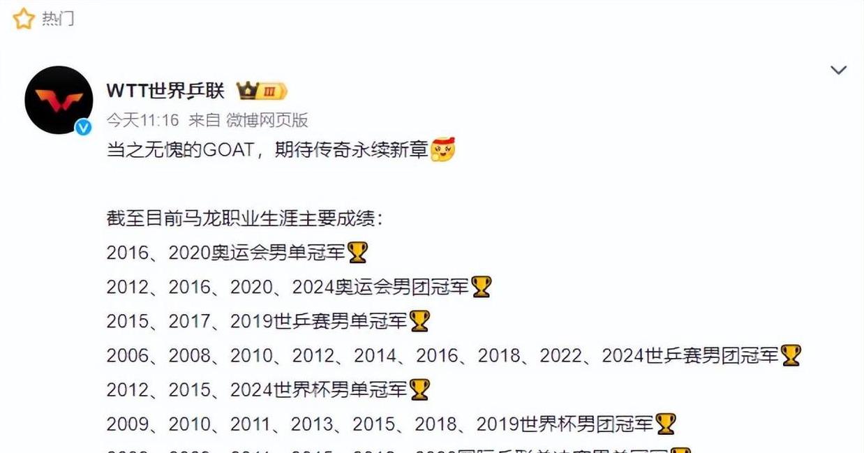 马龙,真是名副其实的传奇人物。新年刚过两天,WTT就对这位选手的战绩进行了盘点。别提商业比赛,他在三大赛事里的表现就已经相当出色啦。光是团体和单打,他就拿下了整整33个冠军。