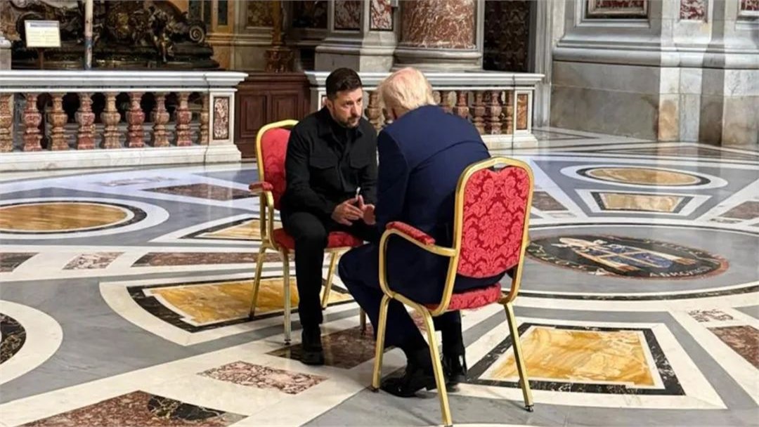 近日,美国总统特朗普与乌克兰总统泽连斯基在梵蒂冈出席教皇方济各葬礼期间进行了短暂会晤。从现场图片来看,两人的会面,算不上一场正式会晤。
