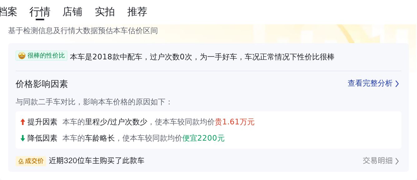 大数据显示,该车在二手车市场上的价格比较合理,符合市场行情。