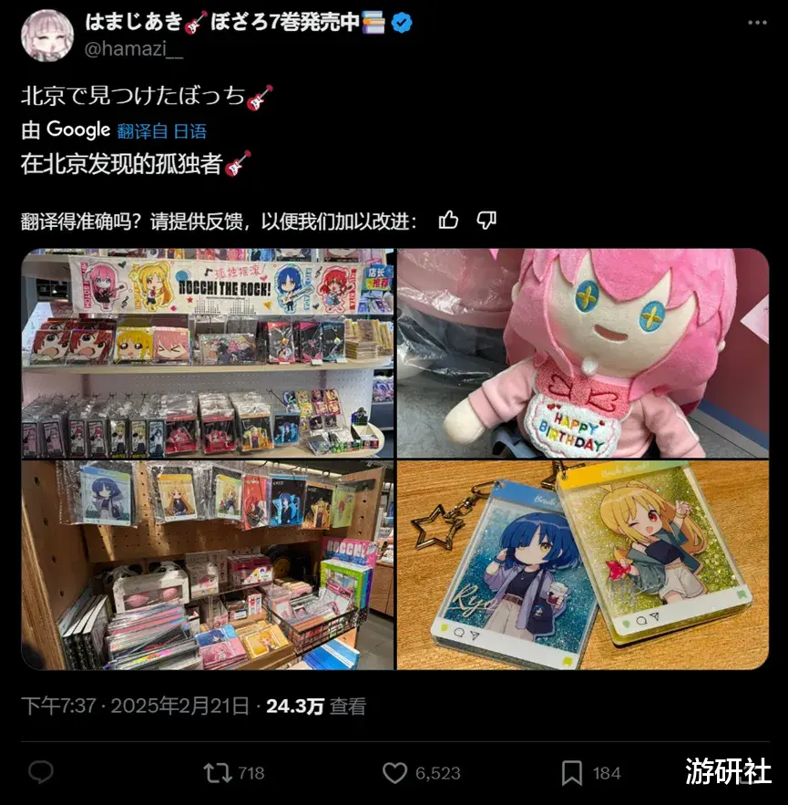 滨路晶就是《孤独摇滚》的原作者,而当她们来到北京的一些二次元商品店的时候,见到的却是许多在日本也没见过的谷子——结果当然是大买特买。