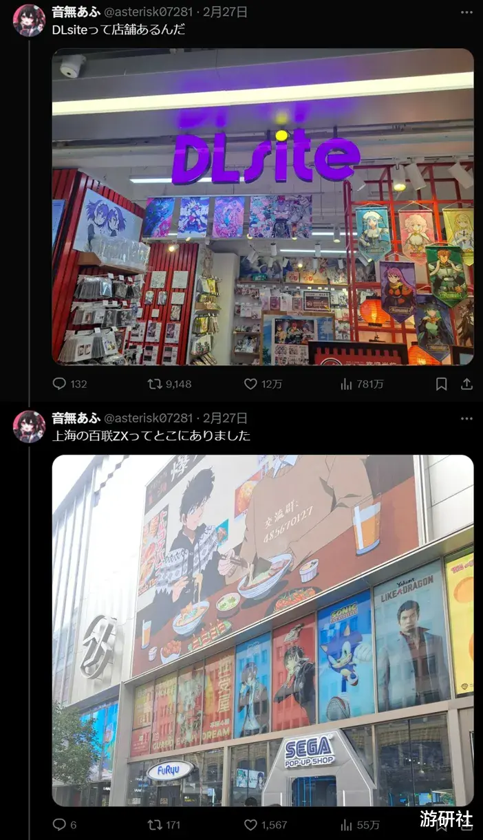 在看过东方明珠,尝过麻婆豆腐和中国KFC之后,她发帖子感叹说宅文化爱好者来上海一定要到南京路的百联ZX看看,这里甚至还有DLsite(日本最大的二次元综合制品网站)的实体店,卖的东西还跟日本国内不太一样。