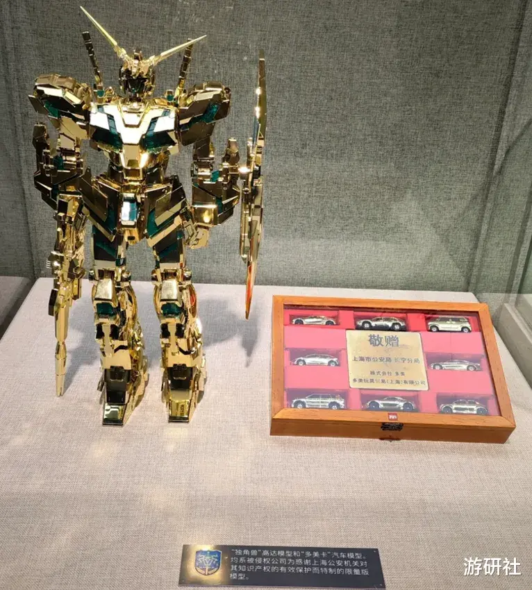 日本万代南梦宫公司向上海市公安局黄浦分局赠送“黄金高达”,都已经是6年前的事了——背后缘由就是上海警方从文庙店铺所售卖的盗版高达模型,一路顺藤摸瓜端掉了位于广东东莞的制假工厂,涉案金额近三亿。