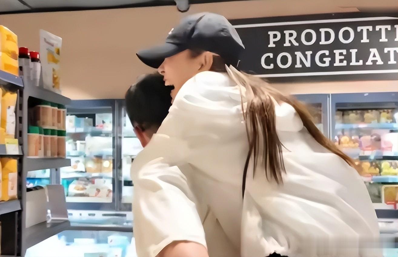 在超市,张子萱一个使劲就蹦上了陈赫的背上。