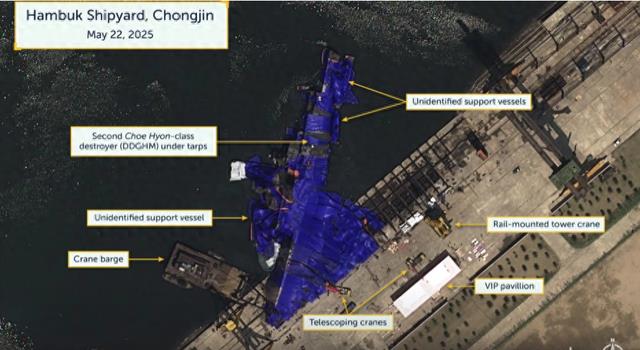 和之前大多数媒体猜测的不同,5月12日的卫星图像显示,当时清津造船厂内的这艘军舰舾装程度远远不及1号舰“崔贤”,甚至能够看到舰艇中后部的垂直发射系统里面完全是空的。相比包括重要电子设备在内的其他设备也统统没有安装,这也是不幸中的万幸了。