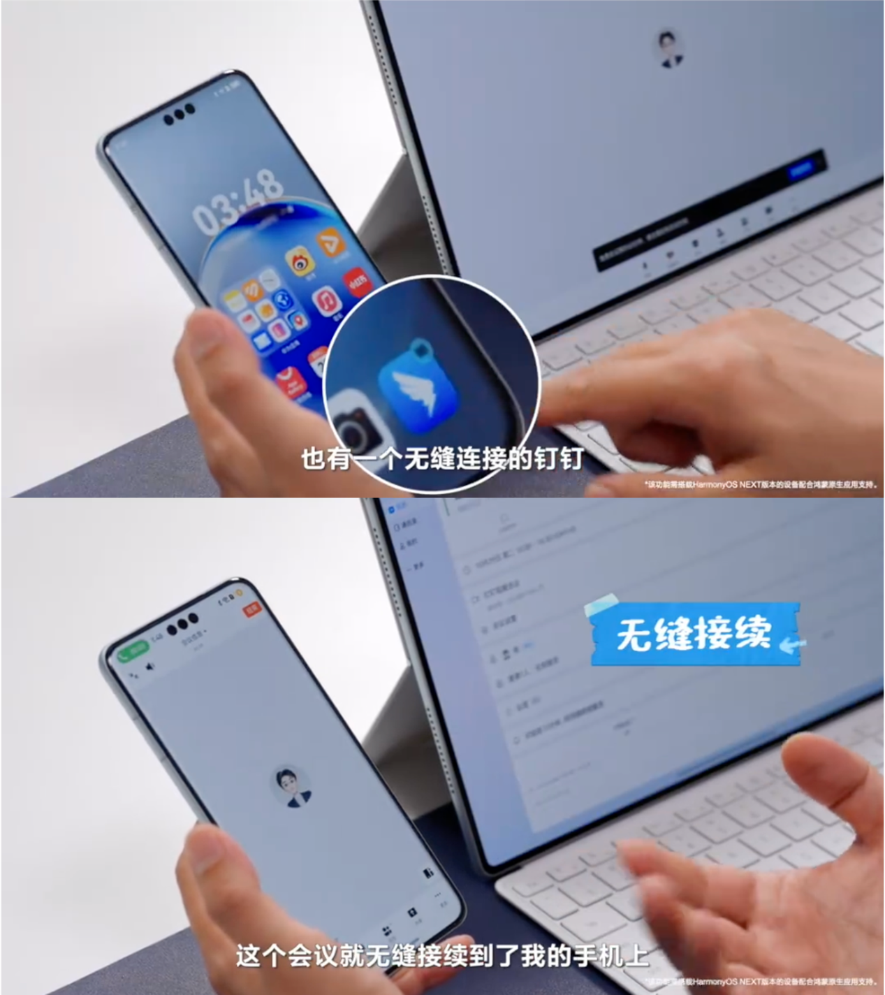 鸿蒙原生版钉钉还有不少创新功能,比如小艺语音一键拉会、系统日历一键入会,以及会议跨端接续等。这些功能乍一看感知不强,但是在我昨天手忙脚乱一边写报表一边还要拉会的时候真的起了作用,让我可以同时兼顾好几项任务,极大地提升了办公效率。跨端接续功能也是我用比较多的,正在用平板开会,有急事需要出去一下,只要平板靠近手机,点击手机上弹出的钉钉图标,会议就能自动流转到手机上,这个功能的含金量就不用我多说了吧。