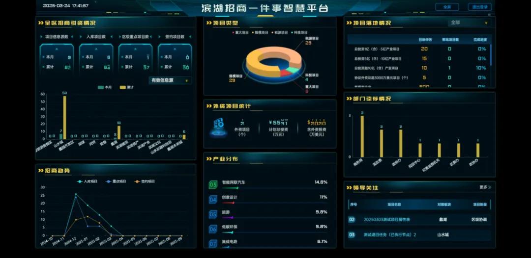 为此,滨湖开发了“招商一件事”智慧平台,实现项目从招引、审批、落地到建设的全流程可视化闭环管理,有效提高项目落地效率。