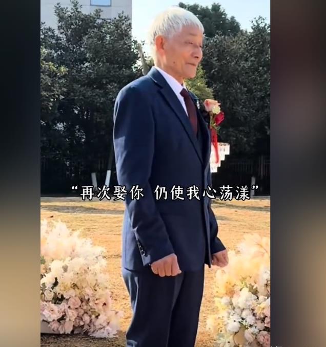 爷爷说,他这一生过得很幸福,只要有奶奶在身边比什么都好,到了新娘入场的时候,爷爷站在原地紧张的像个孩子。