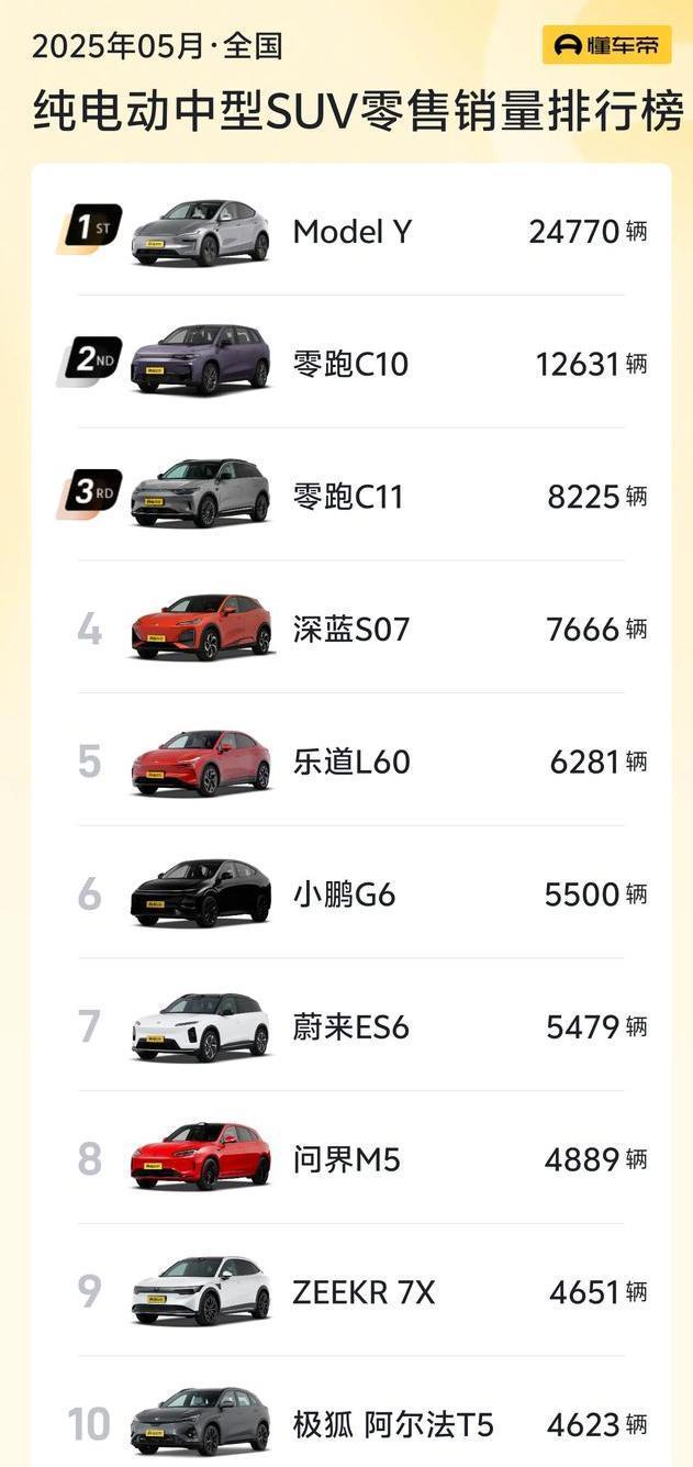 就拿2024年5月的数据来说,特斯拉Model Y那是稳坐钓鱼台,零跑C10和C11也紧随其后,销量喜人。