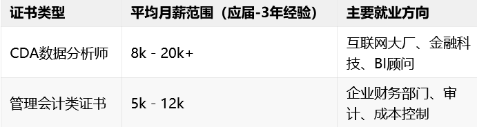最近好多高职大数据与会计专业的同学问我:专业学的东西挺多,但到底考哪个证才对找工作真正有帮助?是管理会计证,还是CDA数据分析师证?这确实是个关键问题——它不只关乎一张证书,更关乎你未来三到五年的职业方向。