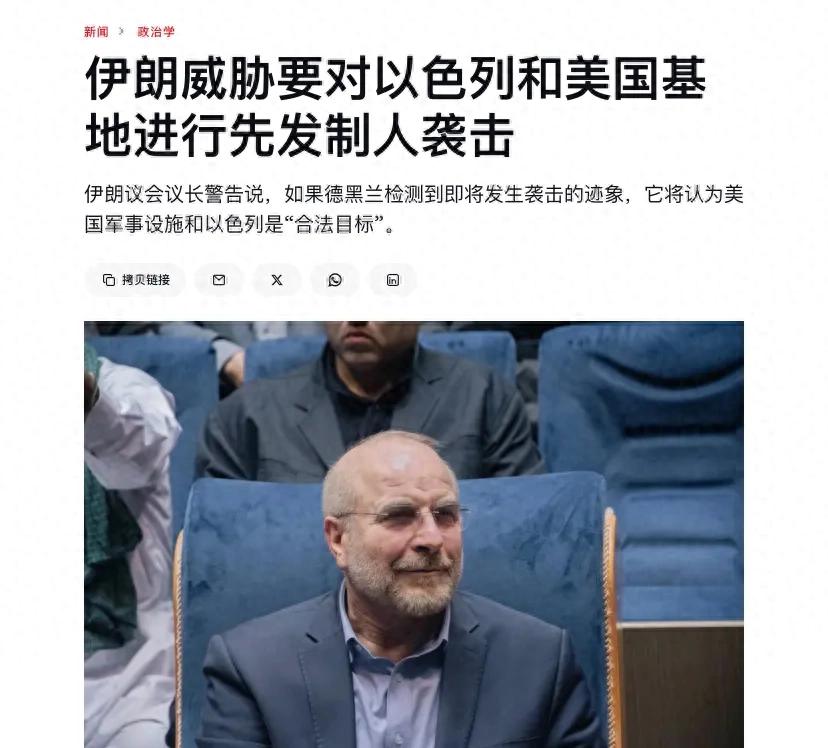 比如1月12日媒体报道,被视为强硬派的革命卫队前军官,如今的议长卡利巴夫,就公开威胁美国和以色列:如果他们有任何对伊朗动武的苗头,在这之前,伊朗敢于先发制人打击以色列和美国在本地区的军事基地。