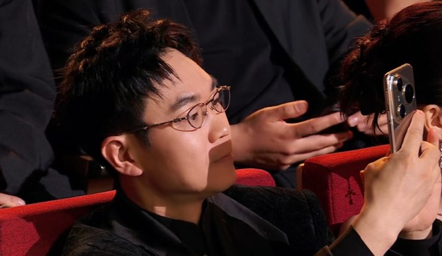 但尴尬的是,邓超和黄晓明这两位“中国合伙人”坐在一起似乎没什么共同话题,两人虽然有对视,但基本没交流,同框画面看上去气氛也很微妙。