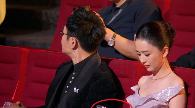 吴磊和张钧甯就被现场媒体发现低头玩手机,虽然有椅子挡着,但是旁边蒋勤勤和王传君都看着台上,而吴磊和张钧甯却低头,对比非常明显。