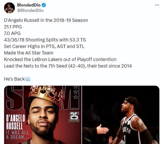 与2018-19赛季的鼎盛时期相比,如今的拉塞尔角色已经发生了巨大的变化。