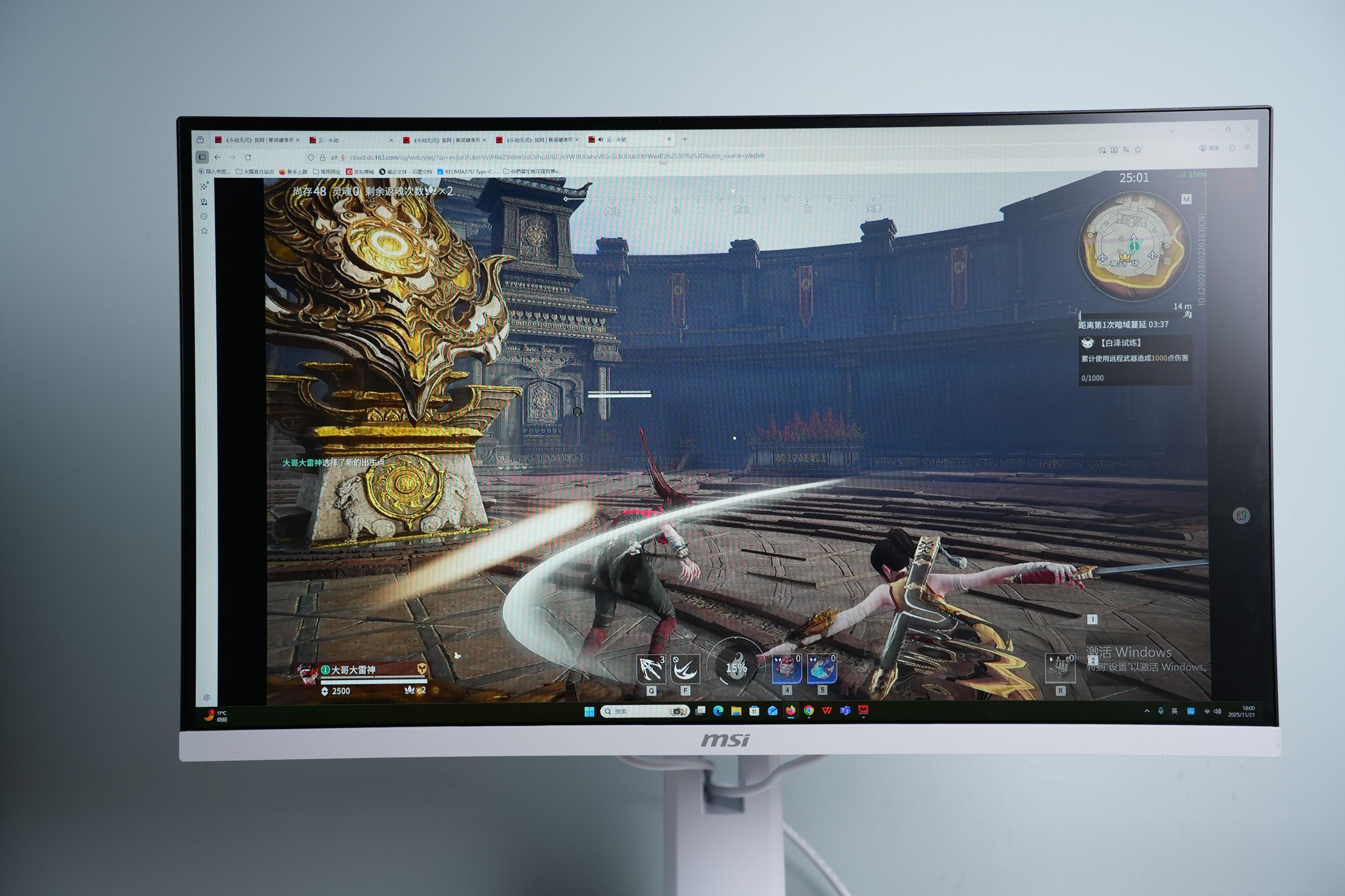 相比较于无畏契约,我更喜欢永劫无间,虽然不是射击类游戏,不过对于玩家的操控要求也很高,由于这款屏幕最高2k分辨率,游戏显示更清晰,当我我在跑图时,对于从草丛里突然冒出来的敌人也能快速应对,毕竟永劫无间这种游戏,快人一步就能先发制人。