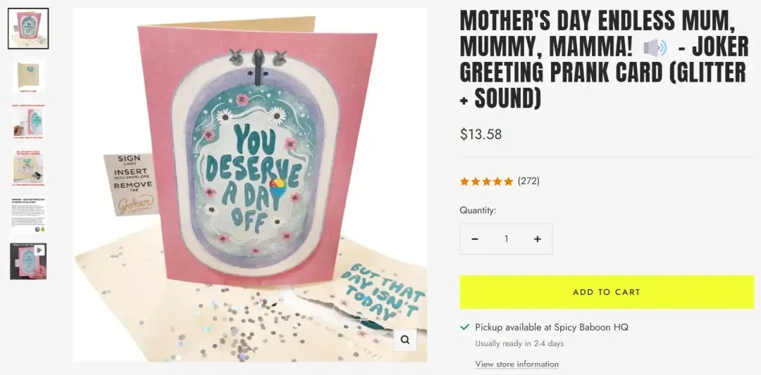 1. 趣味整蛊贺卡:病毒传播的“社交货币”“无尽妈妈声音贺卡”:撕下安全标签后,贺卡会循环播放“妈妈”叫声长达3小时,搭配撕碎后飞溅的亮片,整蛊效果拉满。该产品单条视频播放量超540万,评论区“求链接”呼声高涨。