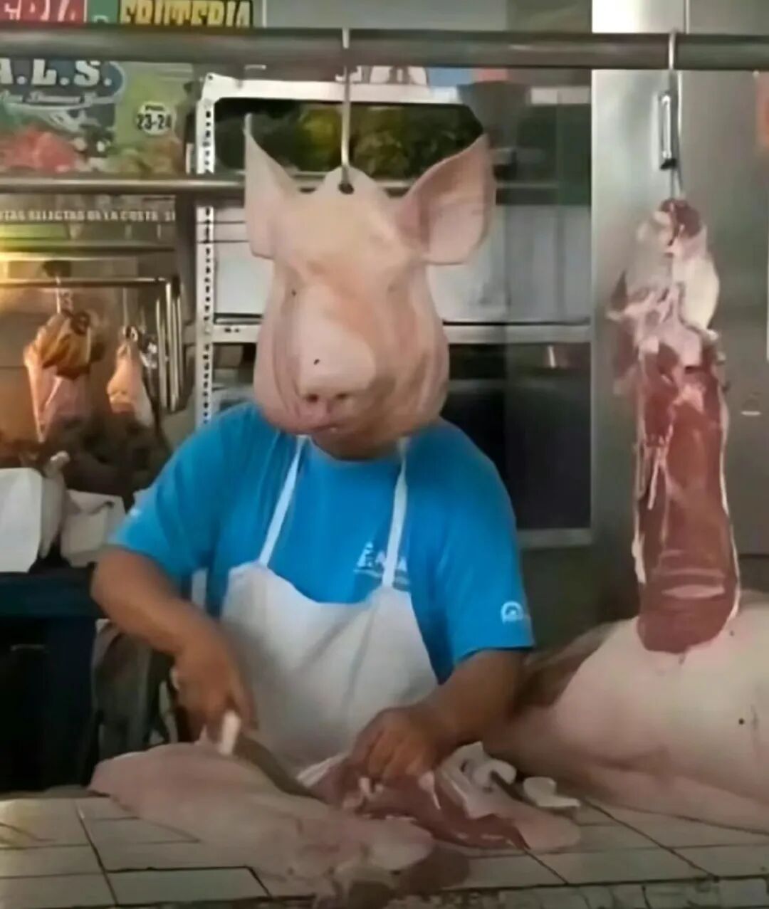 12.这个猪头真是恰到好处啊,这个角度看还以为是天蓬元帅下凡卖猪肉了呢。