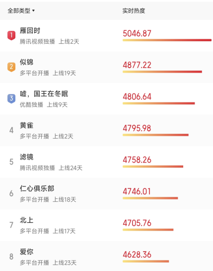在我看来,这部《雁回时》想要超越《九重紫》、《墨雨云间》的热度,并不是没有可能。