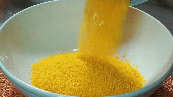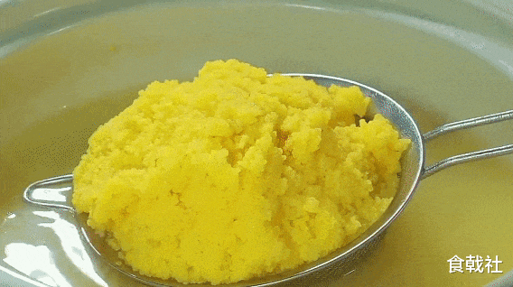 2.每次用漏勺捞小米,都感觉非常治愈,用漏勺把小米捞起控干水分,倒入大碗里,晾到温热不烫手。(小米一定要晾到温热,不烫手,这样鸡蛋和酵母粉才能正常发挥。)
