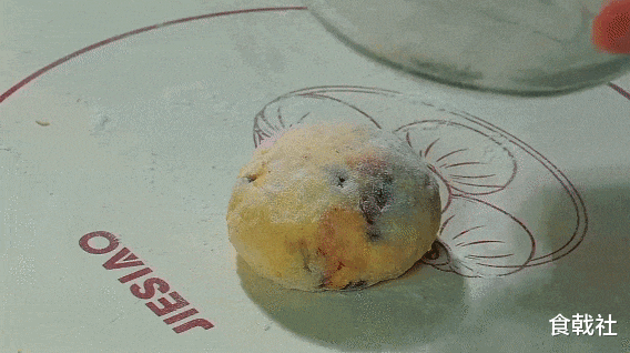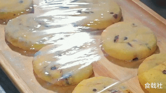 4.想要小饼胚,又圆又匀称,你就找一个平底盘子,在饼胚上涂上盘子面粉防粘,轻轻一压,看不错吧!