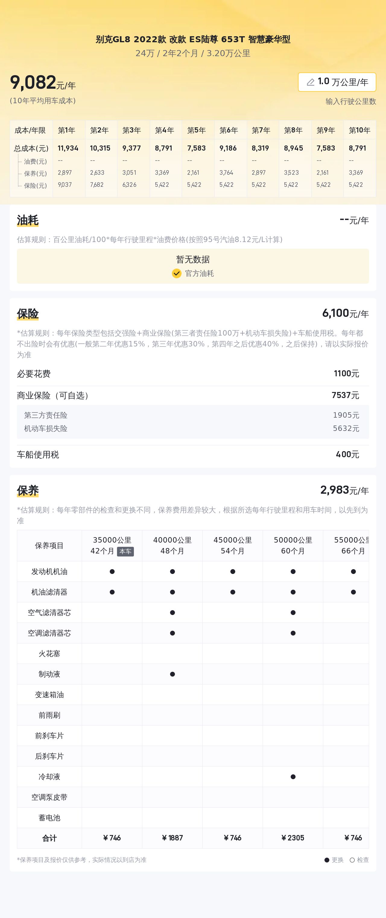 从市场行情来看,这款车的售价在24.12-28.60万之间,具体售价因车况而有所不同。这款车的车况良好,售价24万,性价比较高。关于用车成本方面,这款车的百公里油耗为8.1升,按一年行驶2万公里计算,每年油费约为16200元。保险费用方面,预估每年约为5165元,包括交强险和商业险。保养费用方面,按每年行驶2万公里计算,预计每年约为2748元。这些费用因个人使用习惯和保险配置不同可能会有所差异。