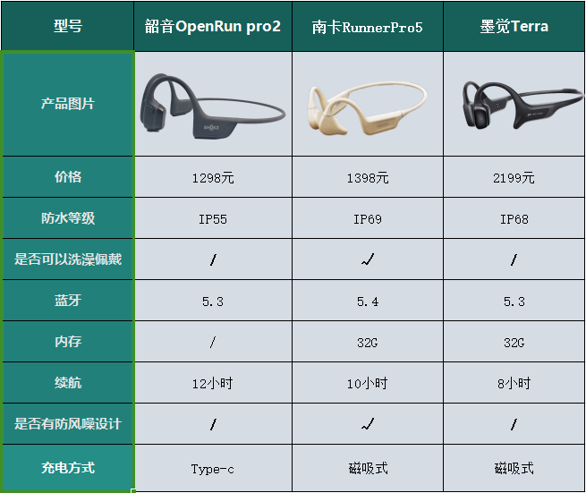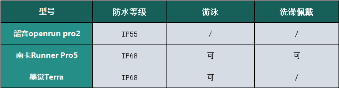 在防水性能方面,南卡RunnerPro5无疑遥遥领先。作为市面上首款达到9级防水的骨传导耳机,它能够游泳洗浴甚至能够抵御水下十米的压强,这对于喜欢水上运动或者经常需要在潮湿环境下使用耳机的用户来说无疑是一个巨大的福音。墨觉Terra虽然也拥有8级防水性能,能够长时间浸泡耳机,但在水下使用触摸操控时常常会出现失灵的情况,这可能会影响到用户的使用体验。而韶音OpenRun Pro2则只有5级防水性能,甚至不能直接冲洗机身,虽然有防尘防水盖的设计,但长时间使用后防尘防水还是会有老化风险,这对于追求长久使用寿命的用户来说可能是一个需要考虑的因素。
