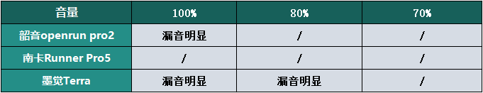 在运动中的表现上南卡RunnerPro5凭借其独特的抗风噪设计,在骑行等户外运动时能有效减小风噪对音质的影响,使得音乐更加纯净清晰。与之相比,韶音OpenRun Pro2虽然同样拥有出色的音质表现,但在抗风噪方面略显不足。而墨觉Terra在音质上则呈现出低频下沉不足、高频部分略显尖锐的特点,整体听感稍逊一筹。此外,南卡RunnerPro5在漏音控制方面表现出色,几乎没有漏音情况发生,相比之下,韶音OpenRun Pro2和墨觉Terra的漏音情况较为明显,可能会影响用户的使用体验。