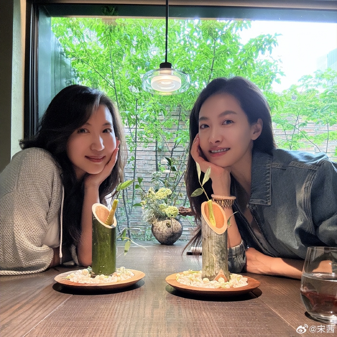 陈好晒出的照片里,她和宋茜都笑得好开心,拥有同款高颜值的两人美得不相上下,颜值、气质都差不多。而且45岁的陈好因为保养得宜,和小7岁的宋茜同框,完全看不出年龄差。