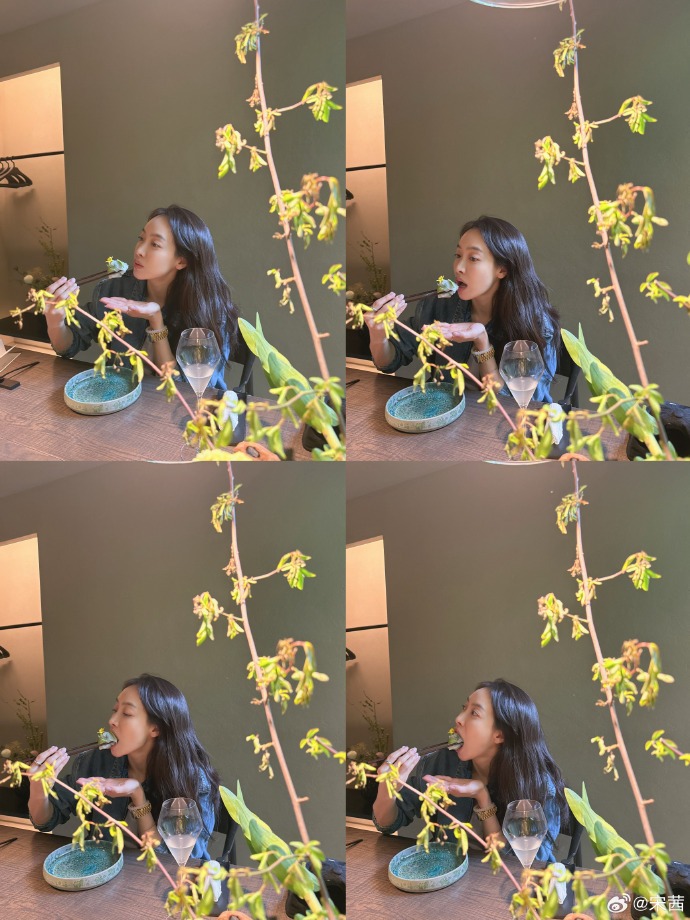 宋茜时而端着一盘长条的红辣椒,时而又开心地炫着美味,真是隔着屏幕都能感受到她的好心情了有木有。