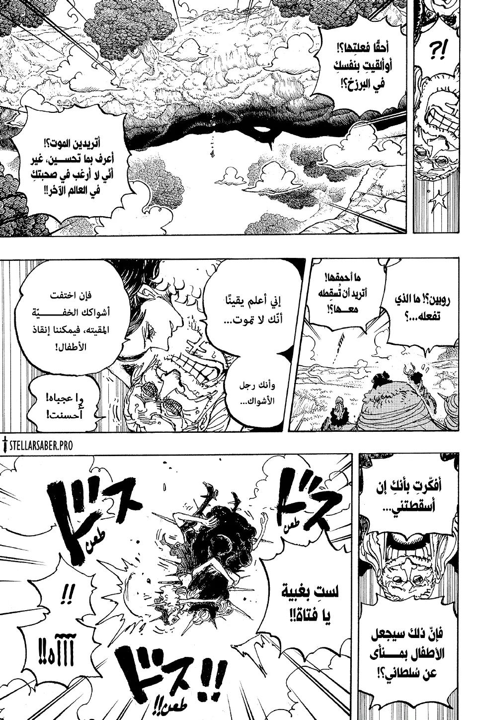 巨人族战士爆发了激烈的争吵,索玛兹圣给了他们一分钟时间,要是不答应摧毁学校和图书馆,他们就会杀死一个孩子。洛妮娅就是第一个被推下悬崖的孩子,东利和布洛基等人继续发出寻找孩子,罗宾和乔巴商议,她准备出手偷袭索玛兹圣。罗宾使用了能力,一巴掌拍过去,直接把索玛兹圣拍飞。