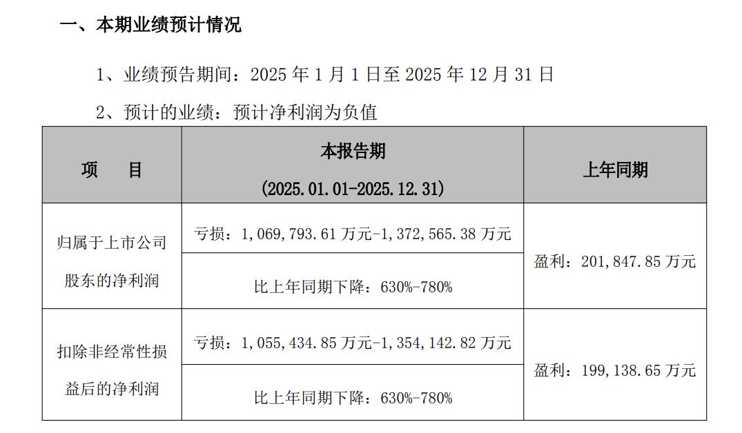 上周,智飞生物发布了 2025 年年度业绩预告,公司预计 2025 年净利润由盈转亏,从 2024 年的盈利 20 亿元转为亏损 107-137 亿元,同比下降 630% 至 780% 。
