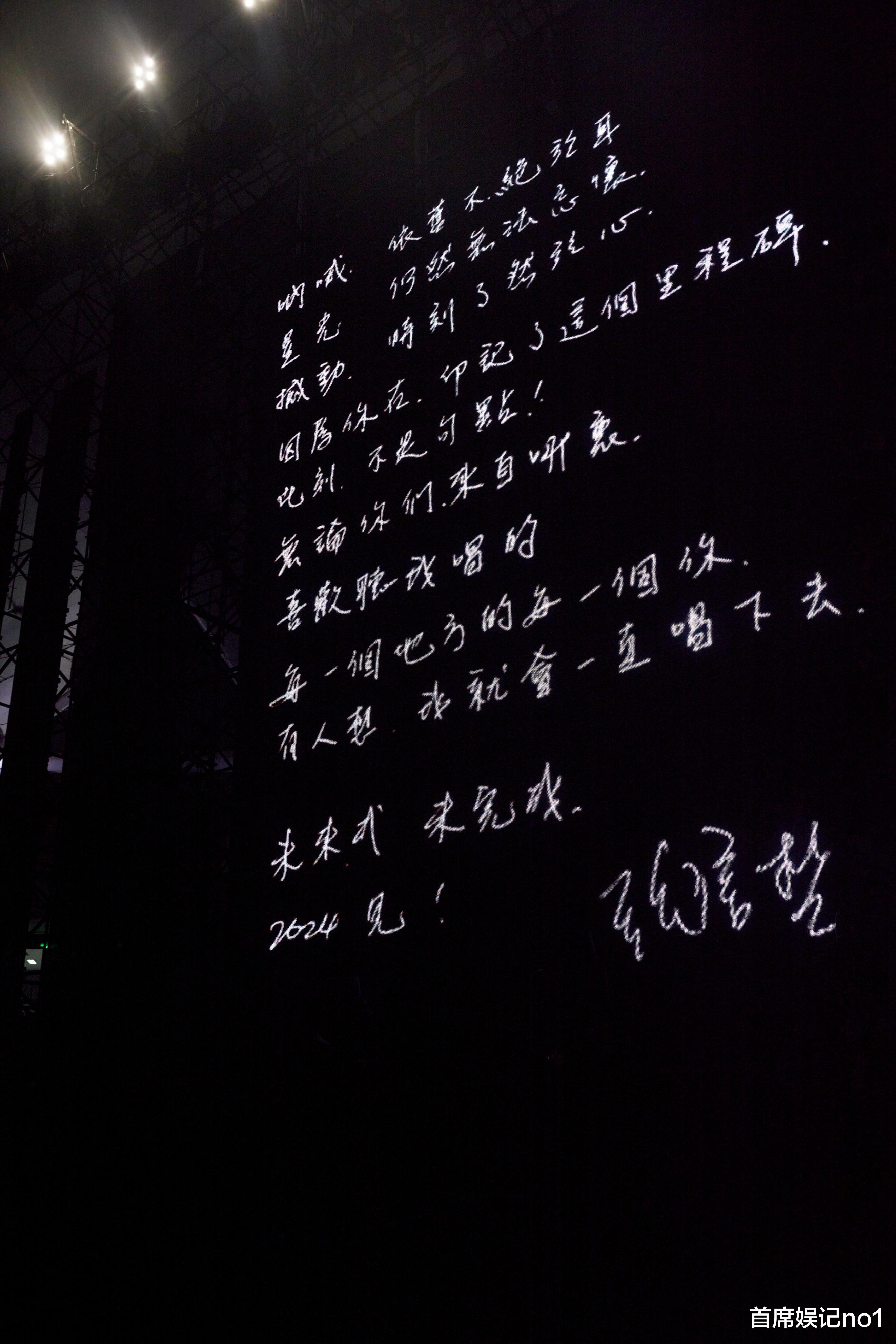 演唱会最后,张信哲在大屏幕上分享了自己的亲笔信,信中把自己今年对演唱会的感受一一分享,同时表达了对歌迷支持的感谢。这是张信哲写给歌迷的一封“情书”,也是“哲式惊喜”独有的浪漫。