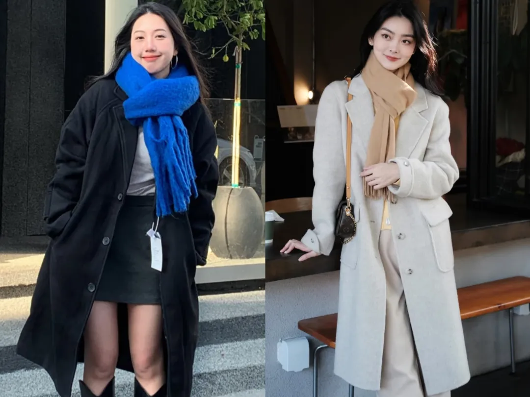 比如黑色大衣配天蓝色围巾,沉稳中增添一抹亮色;或是米色外套搭配驼色围巾,尽显温柔与优雅。