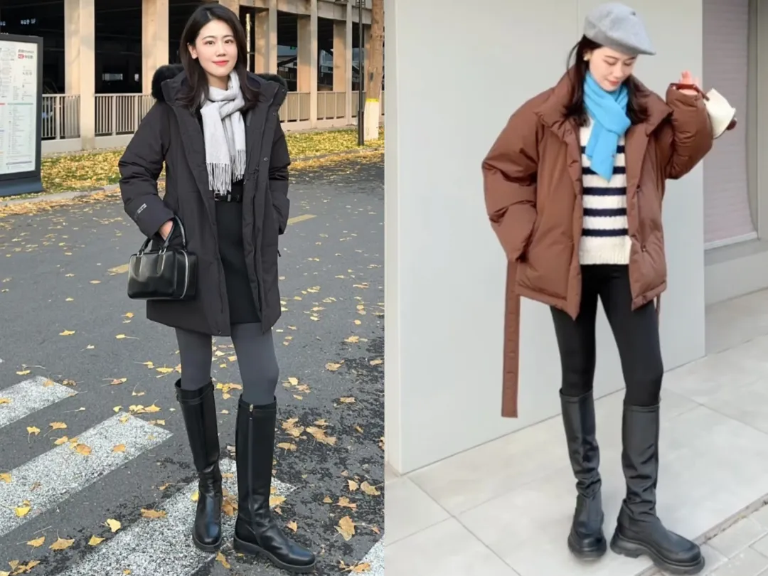 长靴是“下裹脚踝”的经典选择。比如用一些紧身裤来搭配长靴,不仅保暖还显得腿又细又长。
