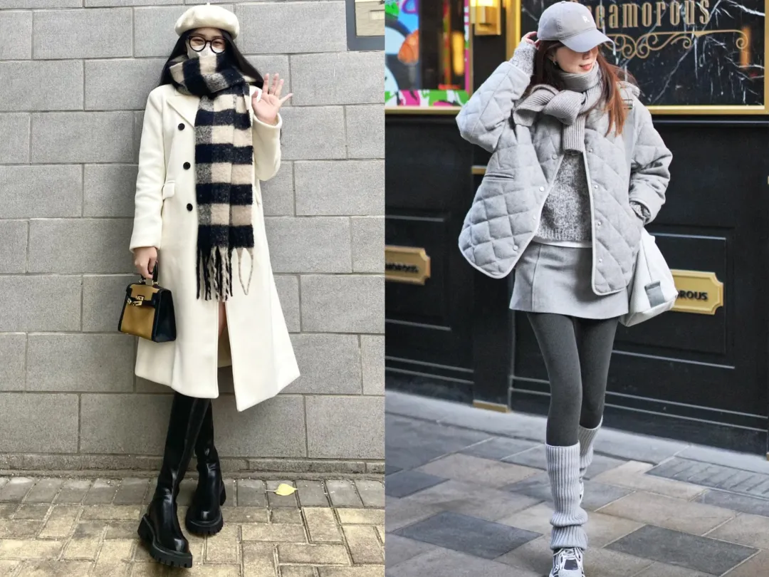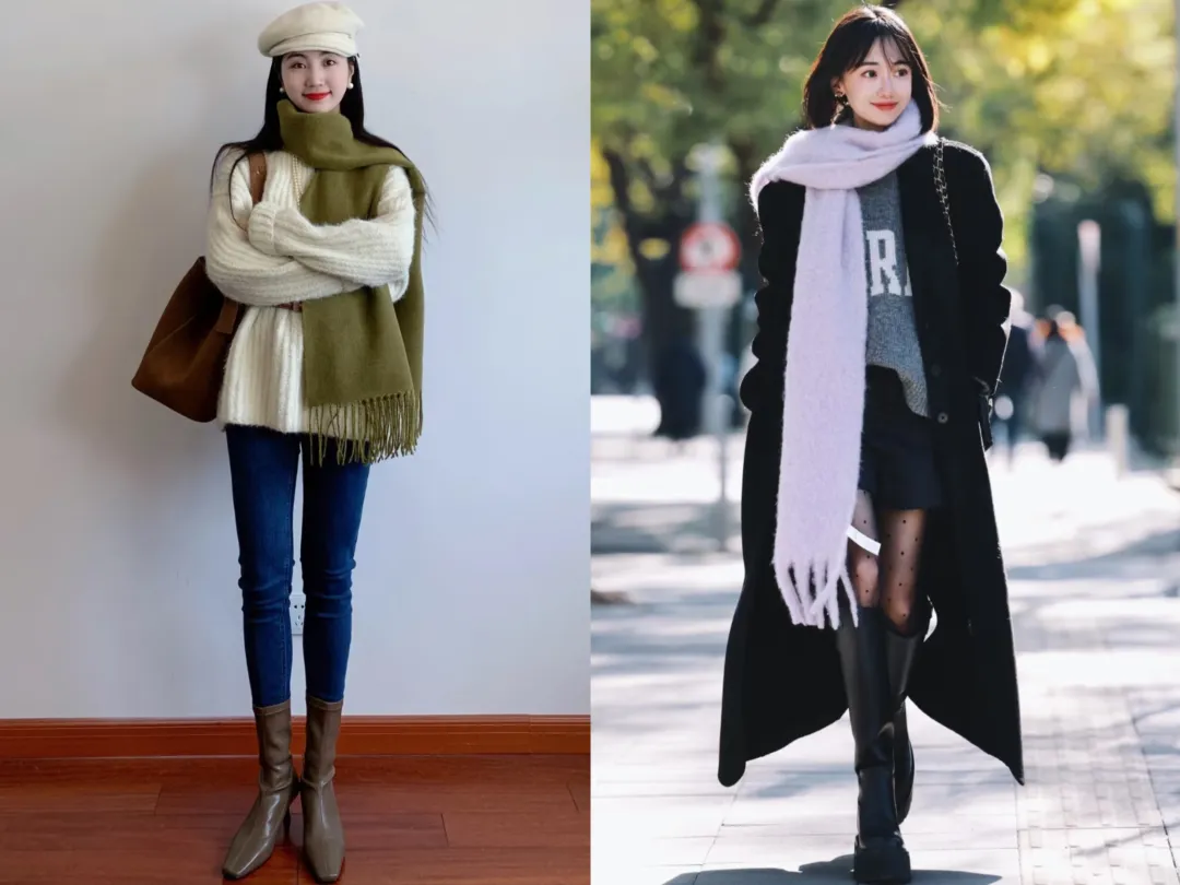 总之,“上戴围巾、下裹脚踝”的穿法,不仅解决了冬日保暖与时尚难以兼顾的问题,还能让你轻松打造出多种风格的造型。