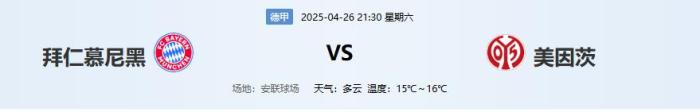 拜仁慕尼黑 vs 美因茨预测分析(2025年4月26日)