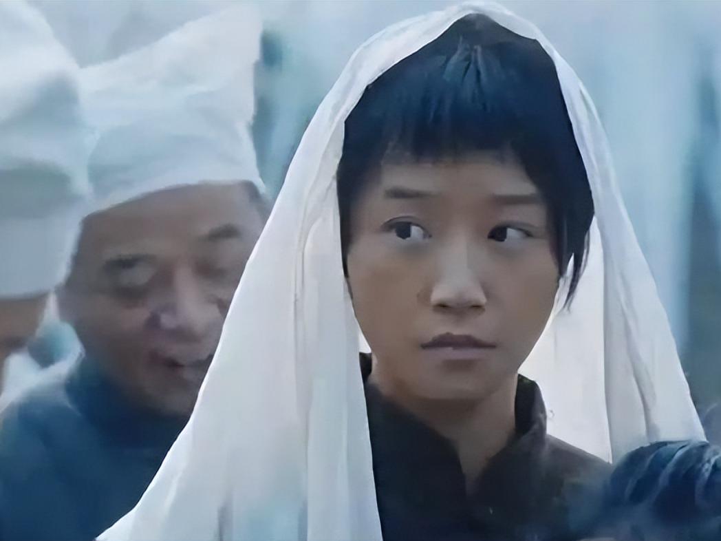 但最绝的不是造型,是她的眼神。明明穷得叮当响,可她眼里没有卑微,反而透着一股倔强劲。一场戏是她跟着爹妈去大地主家吊唁,父母叮嘱她:“哭大声点,说不定能混口饭吃。”结果这话被旁边的心上人听见,嗤笑了一声。银子顿时觉得丢尽了脸,扭头就跑到院子外边蹲着哭。