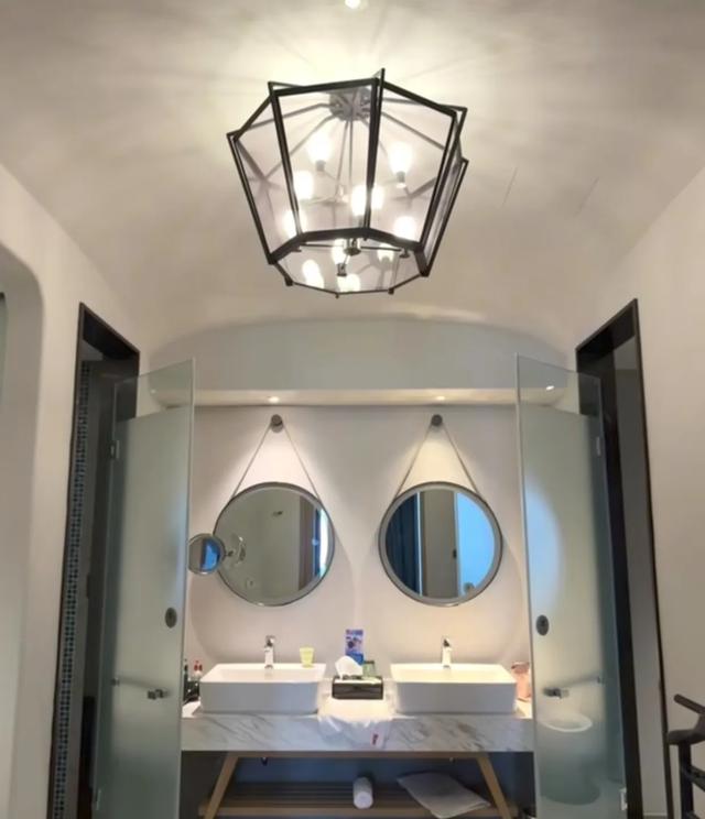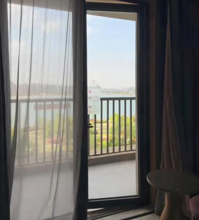 到了青岛后,海一天给老婆和孩子定了可以看海的海景套房,房间干净整洁,厕所还有一个很大的洗漱台。