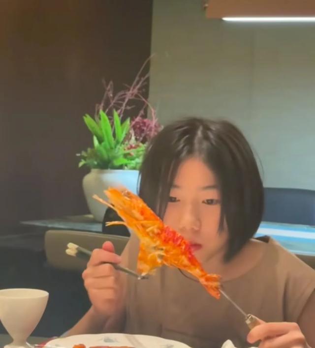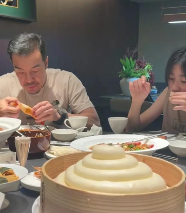 吃饭的餐厅环境也很雅致,一家人选了一个大包厢,点了一桌子青岛的特色菜,吃螃蟹的时候海一天和女儿的动作表情几乎同步了,而且仔细看女儿的脸型和眉眼也都很像海一天,女生男像十分的英气。