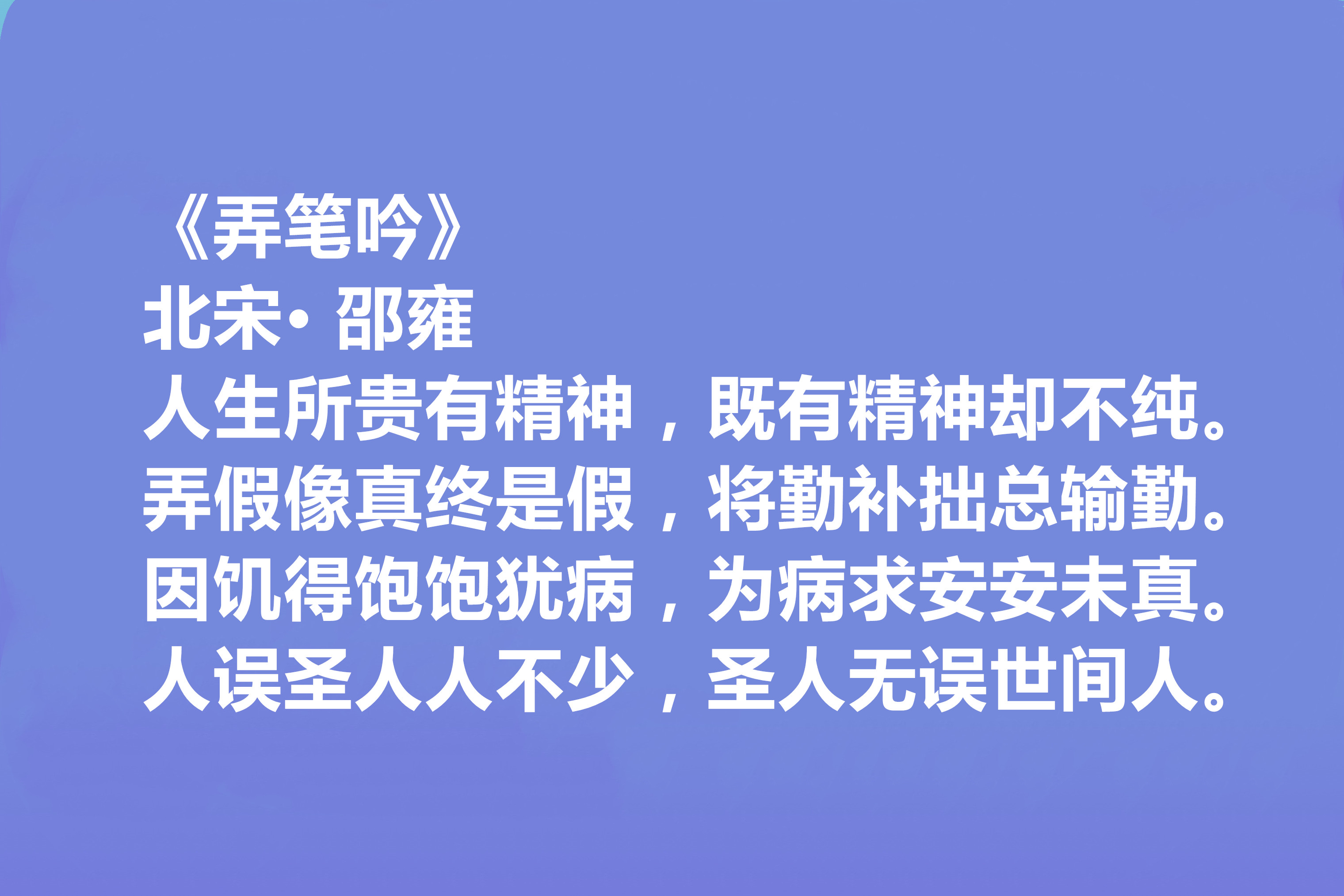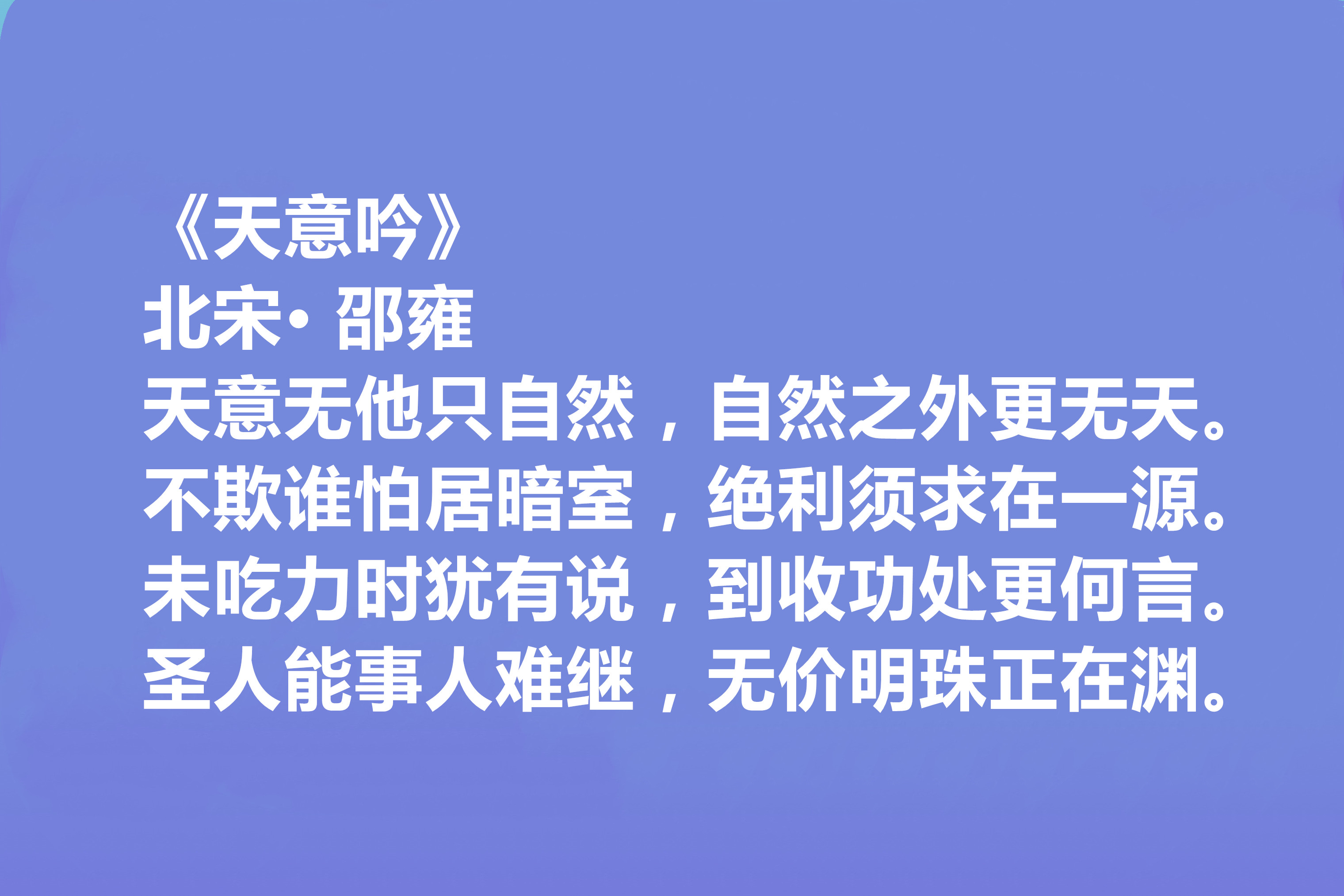 邵雍的贡献在于将理学思想融入诗歌创作,让抽象的“天人之学”变得可感可知;政坛上,他虽多次拒绝朝廷征召,却以著述与讲学影响士大夫阶层的价值取向。而他的诗歌,最独特的艺术魅力在于“以诗载道”,摒弃了晚唐五代的绮靡之风,用浅白如话的语言包裹深邃哲思,读来既如闲话家常,又引人回味天地人生之理。