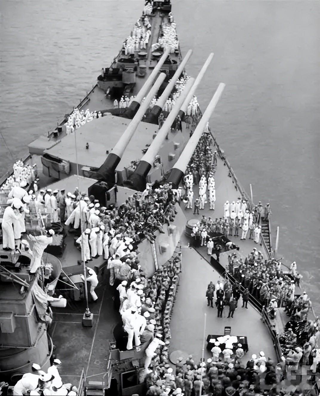 8时整,盟军太平洋战区总司令、美国太平洋舰队总司令尼米兹海军上将登上“密苏里”号战舰。随后,驻日盟军最高司令官麦克阿瑟陆军上将和各国代表也先后登舰。