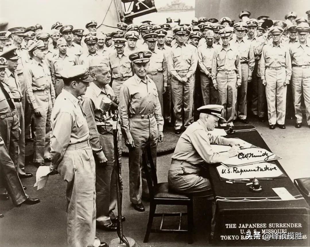 接着,盟国代表麦克阿瑟总司令、美国代表尼米兹上将、中国代表徐永昌上将等各国代表先后签字。