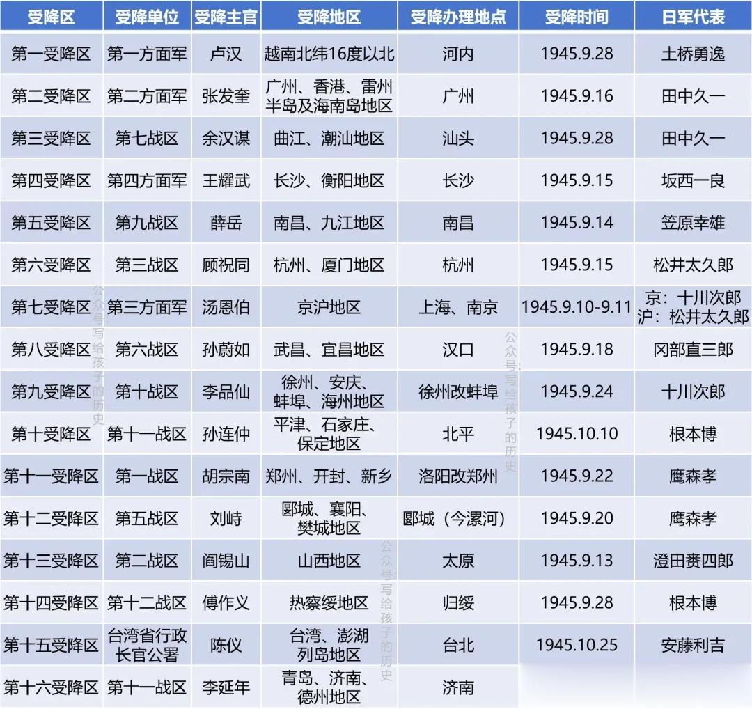 16个受降区