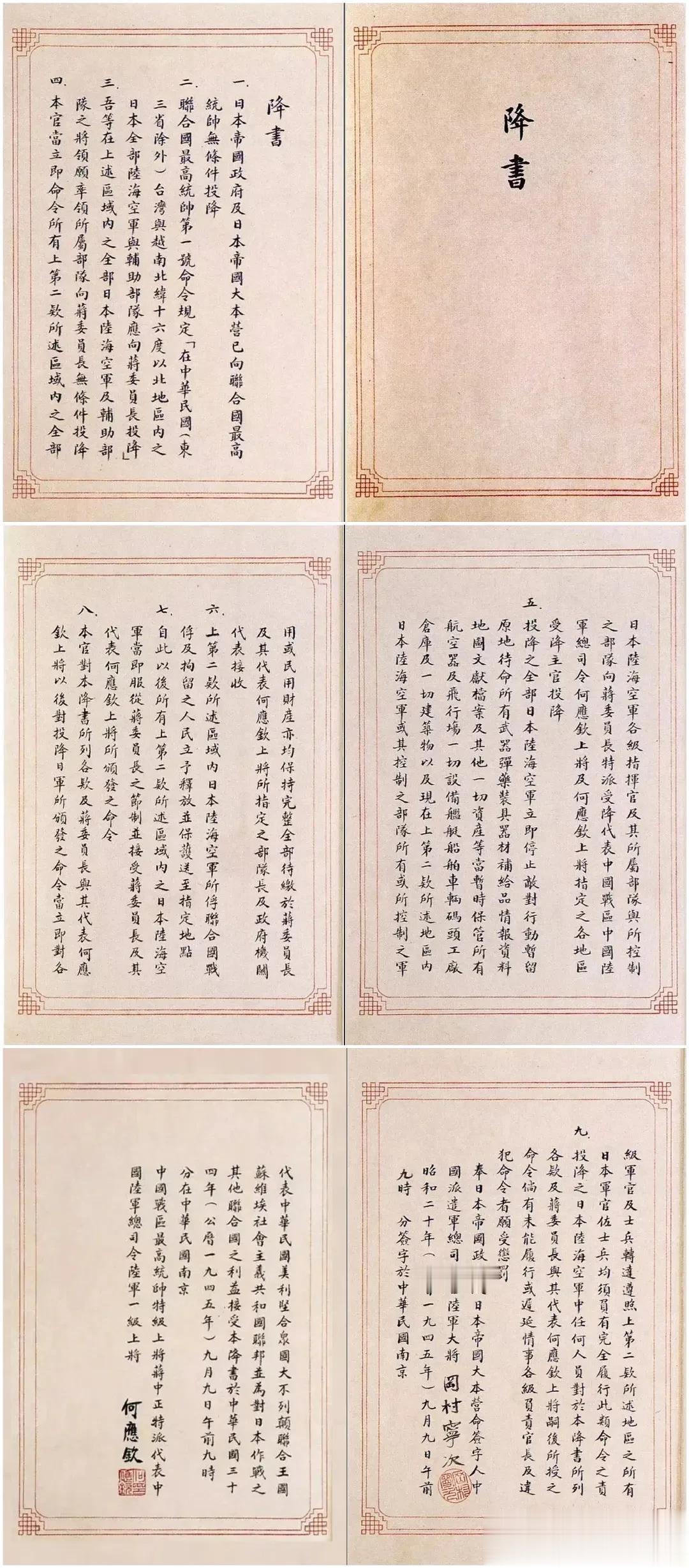 9时6分,何应钦在日军投降书上签字。