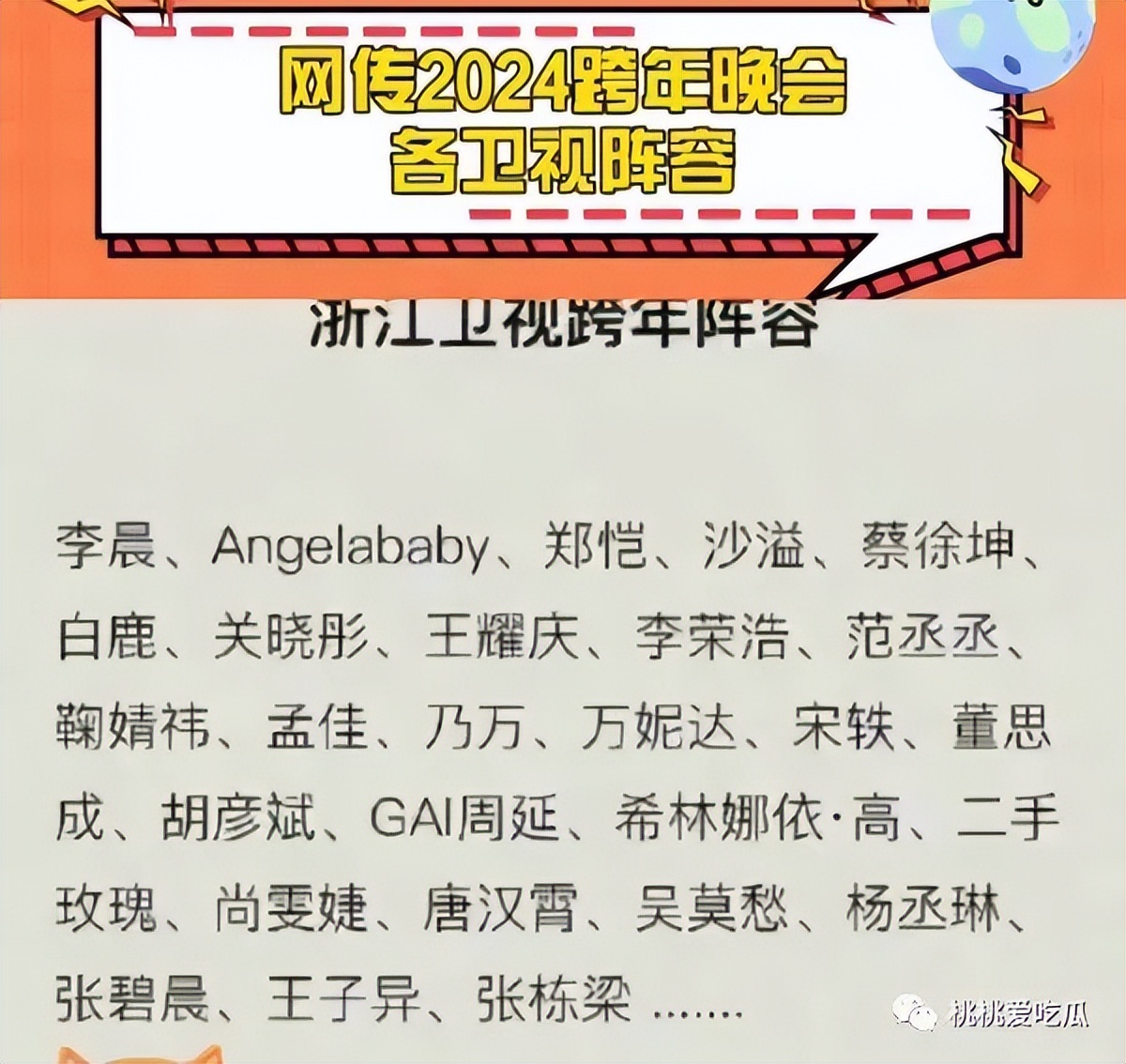 还有网传浙江卫视2024跨年晚会名单中,Angelababy将与李晨,郑凯等《奔跑吧》常驻成员,一起登上跨年春晚。