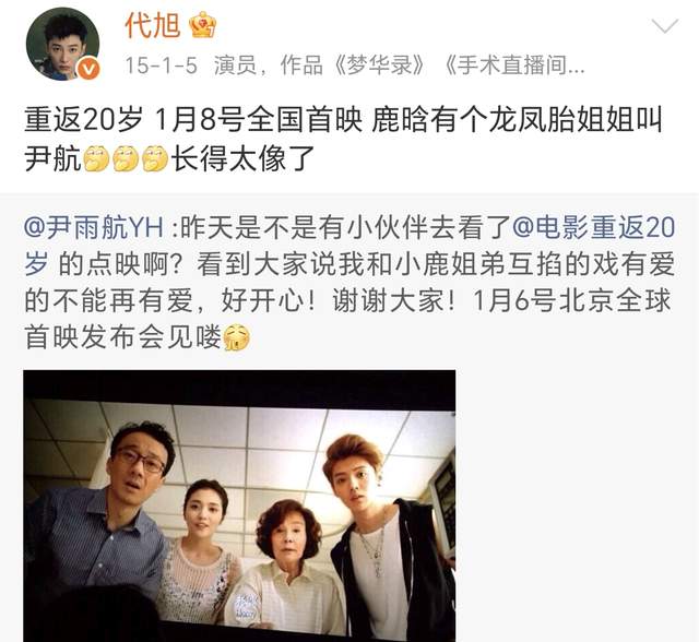 她在戏里演鹿晗的双胞胎姐姐,当时就有人说两人很像,这点代旭也认证过。