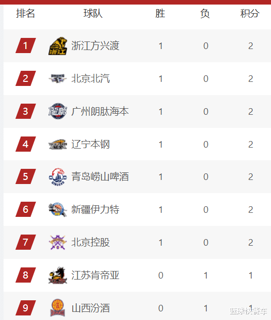 先说说首轮比赛的具体情况吧。目前,首轮比赛还没有完全结束,广东、同曦、浙江、吉林、上海以及宁波,这6支球队还没有登场,他们在积分榜上也没有积分,暂时排在积分榜第15-20名之间。首轮比赛,广厦、新疆、广州、北京、辽宁、青岛以及北控,这7支球队全部赢球,他们的战绩都是1胜0负,获得2分积分。而山西、天津、山东、江苏、福建、深圳以及四川,这7支球队在首轮都输了,暂时只获得1分的积分。